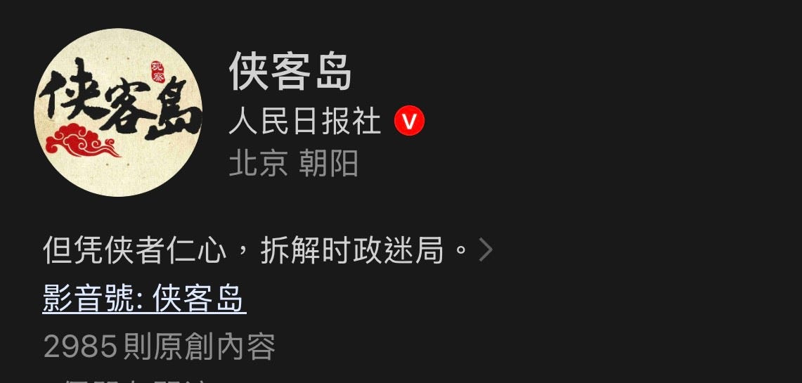俠客島:微信公眾號標示所屬單位「人民日報社」。