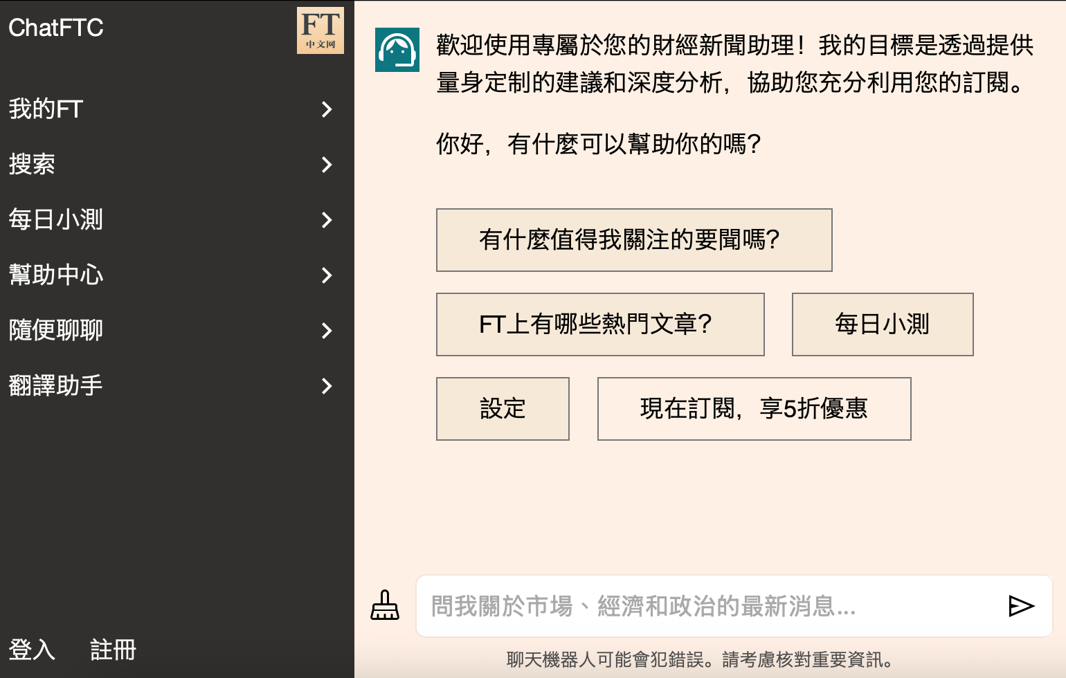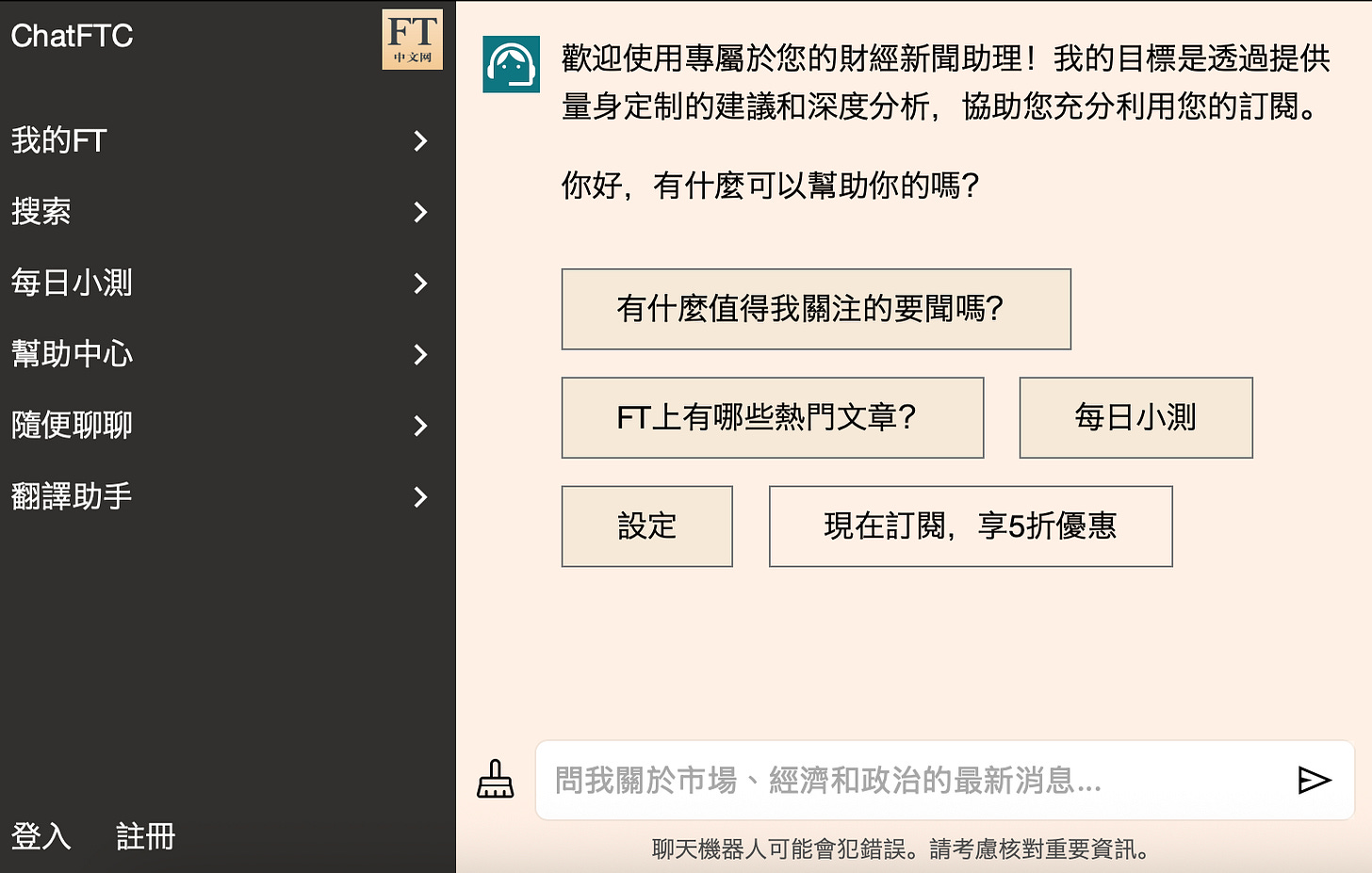 所以我們也向讀者說明,這仍舊是一個experimental product(實驗性產品),我們希望它能提升你的體驗,但仍不能百分百保證它的準確性,如果真的需要引用作為可靠的工作指導、或者是研究的指導,建議最終還是要以FT發表的文章為準。